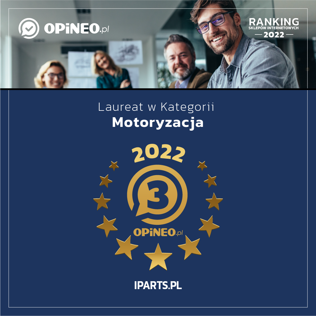 Drodzy Klienci! Zdobycie miejsca na podium nie byłoby możliwe bez zaufania, którym nas obdarzyliście. Nieustannie dbamy o to, aby dostarczać wysokiej jakości ofertę i usługi, dopasowane do Waszych potrzeb. Słuchamy Waszych głosów oraz opinii i pracujemy nad tym, aby jeszcze bardziej udoskonalić sklep iParts. Także w kolejnych latach chcemy być dla Was sprawdzonym partnerem i pierwszym wyborem, kiedy będziecie poszukiwać części samochodowych.